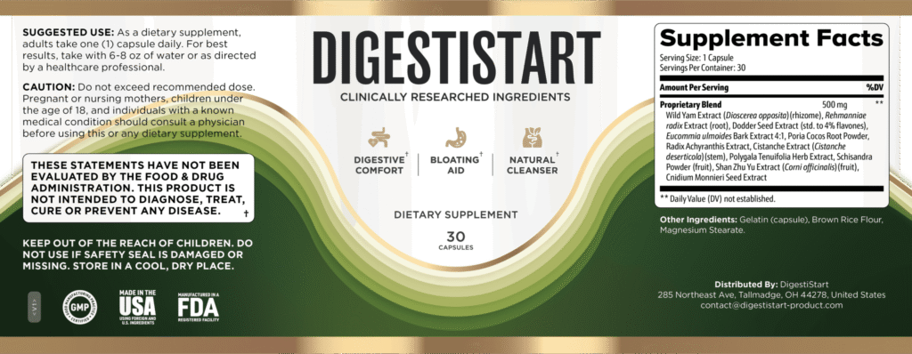 Overall Impact: DigestiStart works to restore and maintain healthy digestion. It supports the body’s natural processes, helping users feel relieved and balanced after meals.